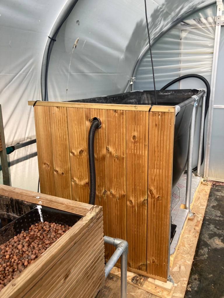 Planted a variety of vegetables including tomatos, peppers, and courgette The innovative fish lidThe polytunnelOur massive fish tankGrow beds filled with lightweight expanded clay aggregatesVegetables growing in one of our aquaponics systemsBeautiful Black Soldier Fly Adult